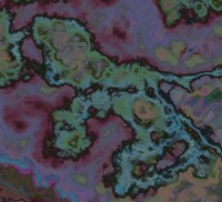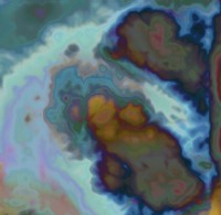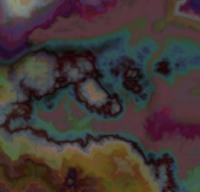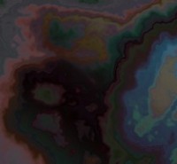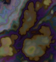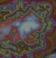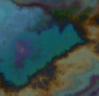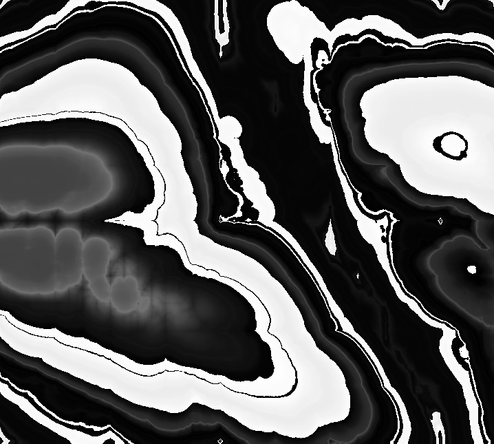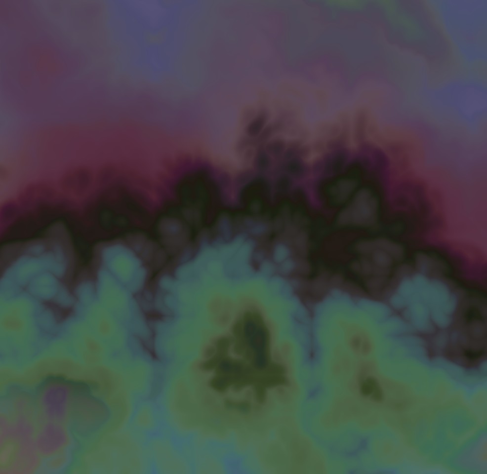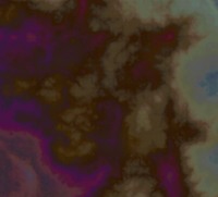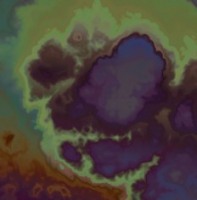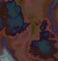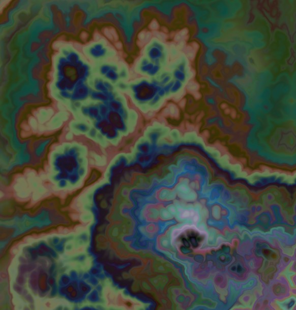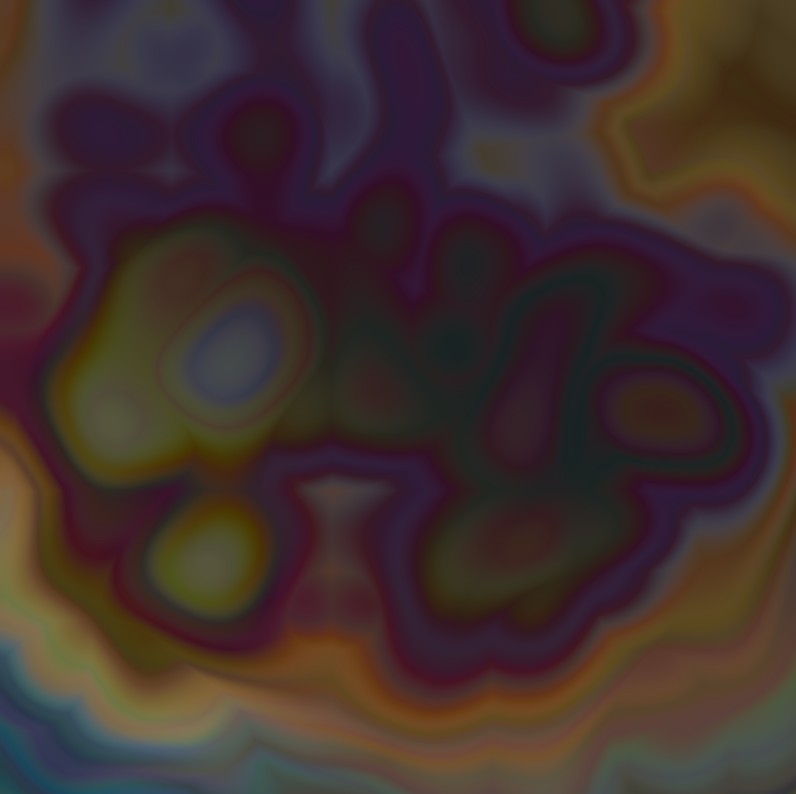 No source code, since this was just a quick hack, and both code & ui are not presentable. If you want to replicate my results, simply use your favourite noise function (the colour images were made with turbulence on top of perlin’s standard noise function, with fixes from this paper applied), then sample twice (in different areas or dimensions) using the original screen X and Y coordinates, resulting in new X and Y coordinates. Repeat this about 2 times more, and for each step use different scaling (you have to play around to get the best values), and in the last step sample R, G, B. Simple, but effective.