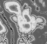 A little experiment in generating more interesting noise than standard perlin noise, by sampling the perlin noise function using itself. Most of the images below have higher res versions if you click on them.